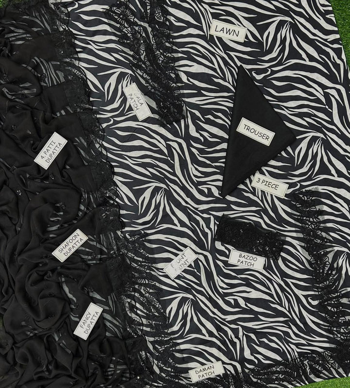 Bamber Chiffon fully Emb duppta plus 4 side Emb pati